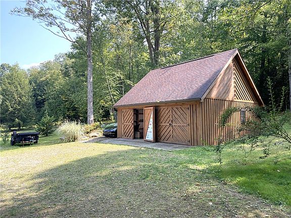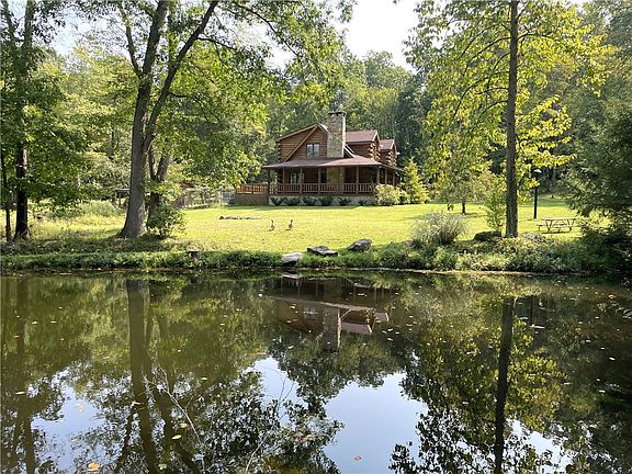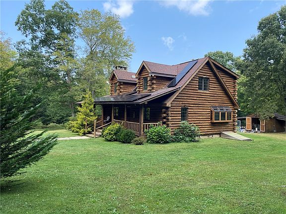The LOG HOME of your dreams! This well maintained beauty was built with white cedar logs, a wrap around porch on over 6 acres of serene wooded lands. Beautiful property w/ 2 stocked ponds and lots of wildlife! Located 1/3 mile to state game lands. Inside you can enjoy family gatherings with the open floor plan, a kitchen with stainless steel appliances (induction range) and black granite counter tops, one wood burning fireplace in living room heats all. A pellet stove in the full walk out basement. The very large master bedroom has a walk in closet and gas fireplace. Much work has been done in French drains & gutters to protect the home and spring. New well dug in 2018 and a spring with a bypass valve for you to choose. For added protection an iron filter, UV light and PH rectifier was installed on the water system. This home has an extensive Electric Solar Energy System with Tesla battery storage unit. Whole house generator, detached 2 car garage, & so much more!