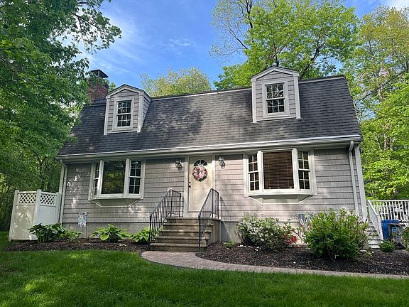 WELCOME HOME TO THIS LOVELY well maintained gambrel cape nestled on a private 2 acre lot in Sheldonville. This is the perfect home for the first time buyer or empty nester. MANY UPDATES INCLUDING - Vinyl siding, vinyl windows, composite deck, roof, home generator, Roth Oil Tank, Buderus Boiler, water heater, heated gutter guards and more. Main level features - eat in kitchen, dining room , living room, office/optional bedroom and full bathroom with walk in shower. Second floor includes 3 spacious bedrooms and second full bathroom. Expansion possibilities in the walk out lower level with second fireplace and lots of nature light. Come put your personal touches on this solid built home. Home includes washer, dryer, refrigerator, window AC. PRIVATE SHOWINGS ONLY - NO OPEN HOUSE -Showings start immediately!