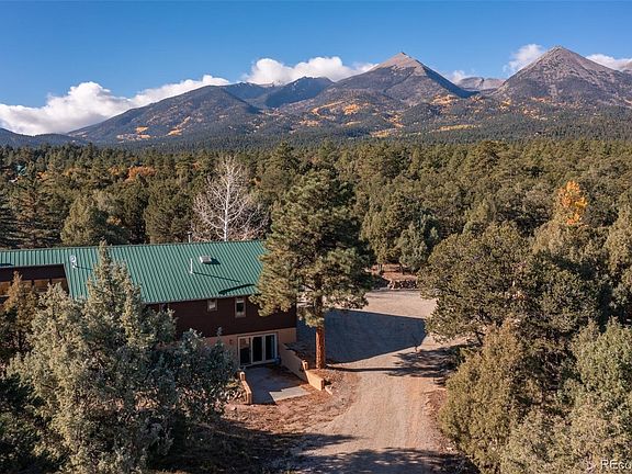 Quiet and secluded, yet with easy access to the town of Salida and the Arkansas River, this mountain home makes an ideal year-round or seasonal residence. The main level kitchen opens onto a spacious living / family room with a wood burning stove for winter ambience. Large windows let in ample natural light, as does the airy neighboring sunroom which in turn opens on to a large sunny deck and patio with mountain and valley views. The main level also features a primary suite, laundry, second bedroom and full bathroom. Downstairs the walk-out basement has a large family room with a small kitchenette, an additional large bedroom, a full bathroom, bonus room for office, crafts, or guest overflow, utility room and ample storage. This lower level has potential to turn into a lock out / in-law apartment. The property also boasts an oversized 896 sq ft two car detached garage and an additional storage shed.