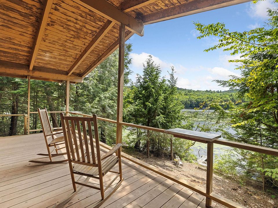 Beautiful 180 degree views of Highland Lake on your own secluded point of land on this perfectly located property. Enjoy your own waterfront vacation, that is waiting for you to spark up the grill, launch the boat from your private dock and look out on your own piece of paradise. Wonderfully designed mid century modern 3 bedroom 1 bath cabin with a large deck overlooking the lake are what dreams are made of. Rocking away the evening looking out at the sunset sparkles off the lake. Currently a seasonal home that is furnished and ready for you or your family and friends. Or ready to be rented, earning income when you are not able to be there. This is the first time this property has been made available for purchase. This is the land that the original developer of the Highland Lake Association set aside for himself. So you can only imagine how special this lot is. It has been in the hands of only one family since the cottage was built in 1970. Used as their vacation home since. It is ready for the next owners to make of it what they wish. Only insulation away from being able to enjoy winter activities from this home. Snowmobiling, ice fishing, snowshoeing and close proximity to many ski resorts. Don’t miss out on this once in a lifetime opportunity to own this gorgeous piece of land on the 697 acres of Highland Lake. Adjoining 1 acre waterfront lot available to be purchased separately.
