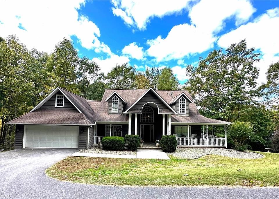 Back on the market no fault of the seller. Welcome to this lovely 3-bedroom, 2.5-bath home on a generous 1.2-acre lot. Step inside and be greeted by the inviting stone gas log fireplace and vaulted ceiling, providing a warm and inviting atmosphere. The main level boasts a spacious primary bedroom with a large en suite bath for your comfort and convenience. Storage won't be an issue with ample closets and space available, including a full basement with flooring and a dropped ceiling. Recent upgrades include 2 new HVAC units, ensuring optimal climate control year-round. Relax and unwind on the covered wraparound porch or the expansive wraparound deck, perfect for enjoying the private setting of the home located in the beautiful NC foothills, conveniently located to the North Wilkesboro Speedway and amenities. Don't miss out on this wonderful opportunity to own a home that combines comfort, style, and a generous outdoor space for your enjoyment.
