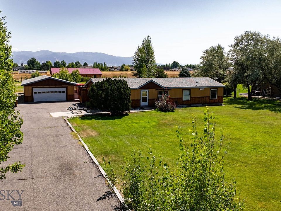 Discover tranquility and space in this elegant single-level home, perfectly positioned to capture breathtaking Bridger Mountain views. The thoughtfully designed floor plan features an open-concept kitchen, spacious living and family rooms, and a master suite privately situated opposite two additional bedrooms. The recently upgraded kitchen boasts gorgeous granite countertops, a stainless workstation sink with filtered water, an upgraded stainless refrigerator, and a generous pantry. A standout feature is the expansive 24x36 insulated and heated garage, perfect for winter comfort, hobbies, or extra storage. Additional amenities include an attached garage shed, a large storage shed for landscaping tools, and an enclosed greenhouse/sunroom for year-round gardening. Set on a fully landscaped 1-acre lot with underground sprinklers, there’s plenty of room to grow and play. Relax on the quiet back deck under a custom-built pergola and soak in panoramic mountain views. Immaculately maintained, this home truly reflects pride of ownership.