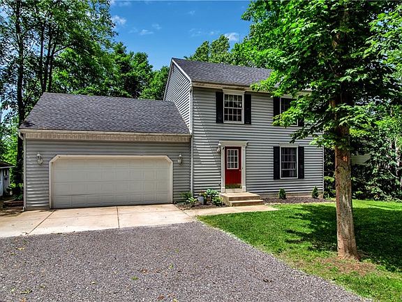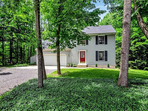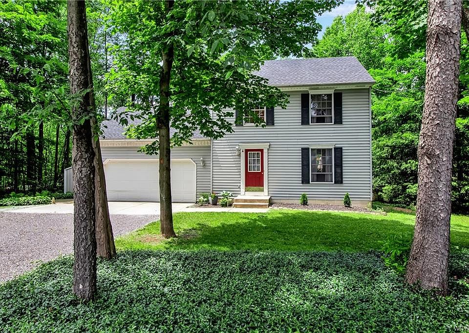 WELCOME HOME to this impeccably maintained 3 Bed, 2.5 Bath Colonial nestled on a picturesque 2+ wooded acres! First floor features a spacious kitchen open to dining room & large living room. Glass sliders off dining room lend an abundance of light & nature views, making the space tranquil & airy. Second floor features 3 bedrooms & 2 full baths, including a Master Suite w/ its own private bath, & his/her closets! Relax on your back wood deck & brick paver patio w/ exterior step lighting & enjoy the beauty & serenity of manicured perennials, greenery, & woods. Attached 2.5 car garage w/ American Eagle wood stove. Shed. Full Dry Basement. Roof 2013. All appliances included. STAR Discount $509.