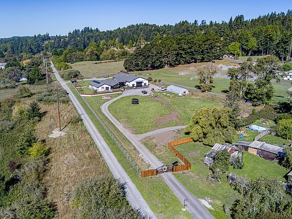 Located in sunny Carlotta, come explore a one of a kind dream home sitting on a 2.6 acre lot. This property features a 3030 sq. ft. custom craftsman home completed in 2023 and s 5,000 sq. ft. multifunctional shop that has been fully spray-foam insulated and includes a large wood stove to keep you warm year round. The shop and home are connected by a large lit breezeway to keep you out of the weather while unloading groceries day or night. This home was designed and built with timeless style and energy use in mind. Fully electric with solar, and gas lines plumbed in for future optional use. The closed-cell spray foam and rock wool in the exterior walls and attic make this home incredibly efficient. Designed as a fully sealed home, fire embers have no way to enter a crawl space or attic space for peace of mind and controlled excellent air quality. Other features include: cedar Finlandia sauna in the master bathroom with heated floors and towel bars. Oversized laundry/bonus room, extra large kitchen pantry. Milgard Ultra fiberglass windows and sliders with LIFETIME glass breakage warranty, electric heat pump water heater with hot water loop for true instant hot water at all fixtures. Electric heat pump ducted heating/A.C. system. Full security and surveillance. The large open shop has enough space to store your vehicles, boats or equipment with ease. 1100 sq. ft. of the shop has been upgraded with insulation and drywall to create separate rooms for welding, spraying or additional living quarters. Shop includes a bathroom, shop sink, two large storage lofts and a private office complete with flooring, concrete counter tops and cabinets. The shop also includes a large indoor gym ideal for enjoying exercise at home. Highly esteemed Cuddeback Elementary school is next door with a private exclusive lockable gated access and Hydesville Elementary just up the road as well. With a one minute drive to the highway and a ten minute drive to Fortuna, this dream property is the perfect blend of functionality, comfort, style and convenience. Appreciate views of the Eel River Valley, with gorgeous sunrises and sunsets and no city lights to distract from the country night sky. Spend time in the 2400 sq. ft. greenhouse with 20+ gallon per minute well. This property includes 10,000 gallons of storage, with both untreated AG water and professionally installed UV sanitized and filtered water for the home. Relax in the outdoors on a large covered patio with stamped, colored concrete that wraps the entire home. Enjoy spending time outside in a fully fenced property with an automatic gated entry. Also, a wrap around driveway for large trucks and trailers with an additional gated entry at the SW end of the property. Plans and permit for an additional 1200 sq. ft. ADU already approved by county building department and ready to build in the NE corner of the property.