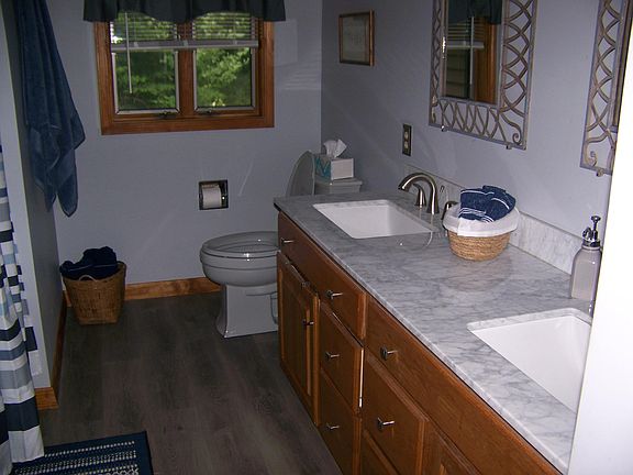 Newly renovated kitchen with appliances, updated bathrooms, and some final painting and work being done to other parts of the house.