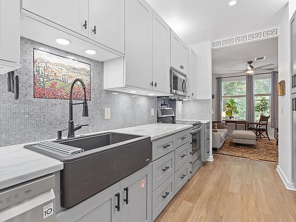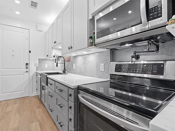 Rare studio condo with partial downtown views now available at treasured Zilkr on the Park! Experience having Zilker Park as your backyard with this unique gem. This condo is beautifully renovated and includes Carrara Marble countertops, Italian natural stone accents in kitchen, custom built soft close cabinets/drawers, under and over mount lighting, upgraded appliance package, wine storage, LED lighting, black out shades, custom mosaic work in shower, HUGE walk-in closet built-ins, NEST smart home devices, private balcony, and green views galore that include partial DT skyline! Condo is steps away from Zilker Park, Butler Hike & Bike trail, Barton Creek, Lady Bird Lake, Barton Springs Pool, many restaurants/bars, and Lamar bridge plus a short stroll to the heart of DT. A dream condo that will include a 58'' flat screen smart TV, Sonos surround system and with an open layout that makes this studio feel like a one bedroom. This elite community has a 5-Star amenity package that includes a state-of-the-art fitness center, club room with a billiard table, card table and 80'' flat screen TV's, business center and conference room, picnic/biergarten area, rooftop swimming pool, community garden, BBQ grill, firepit area and more! It has one assigned parking space in the attached gated garage. Please call to schedule a private viewing today as this will sell quickly!