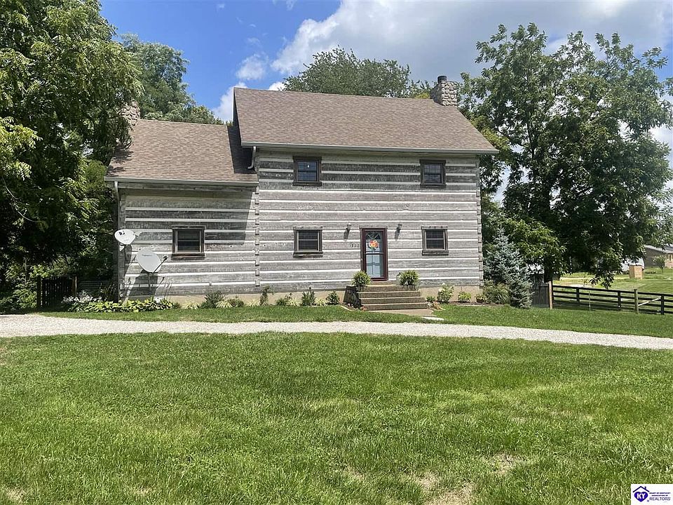 Don't miss out on this beautiful, unique log home situated 5.86 acres. Home was built to be a replica of the Lincoln Heritage Home! Features 2 bedrooms and 1.5 baths. Large living/family room with gas log fireplace. There is also a gas log fireplace in the eat-in kitchen. Living room has 20 foot vaulted ceiling. Home has a full finished basement where you could add a third, possibly fourth bedroom. Large covered deck with fenced in backyard. 2 storage sheds also remain with property.