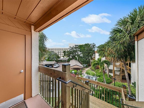 Find safety and security from possible inclement weather near your beach dwelling with a top floor unit with eastern exposure at this wonderful Midnight Cove II unit. Priced extremely competitively on Siesta Key, this nicely renovated unit overlooks the boat traffic and wildlife playground that is the intracoastal waterway that runs between Siesta Key and the mainland. A unique opportunity to capitalize on attractive income while utilizing this third-floor perch to drink in a saltwater breeze when your schedule permits. From your sun deck, a wall of glass sliders connects you to the main living space, flooded with cheerful Florida sunshine. Delight in low maintenance living with the handsome LVP flooring throughout the space. The kitchen offers updated cabinetry, chic stainless appliances and granite counters that shine under the recessed lighting. The dining area offers seating for six while the living area is the perfect place to kick up your feet after a day of Siesta Key adventures. The principal suite is bright and fresh with a beautifully renovated full bath. The second bedroom offers an attractive headboard wall. Guests and families will be quite comfortable with the unique, second full bath allowing for a private space to refresh. With amenities that rival or bests many communities, Midnight Cove II is a vibrant, welcoming place to call home with a marina, tennis courts, barbecue area, fitness room and heated pool. You will also enjoy deeded beach access to Crescent Beach, Siesta Key’s renowned beach with powdery white sands along the Gulf of Mexico. Take a stroll or a trolley to any one of the eateries and shopping opportunities along Siesta Key or venture off island and explore Sarasota and beyond!