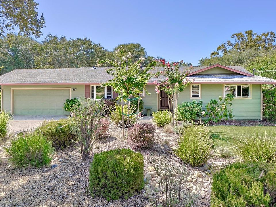 Green Springs Ranch presents this thoroughly updated single story resting on 5 usable acres. Sunny family room w/pellet stove opens to the dining room w/built in cabinetry. Kitchen offers updated cabinets, built in appliances & vent-able skylight. Updates include bathrooms, concrete siding, Pella windows, Trane HVAC, tile, Australian cypress wood & engineered floors. Set back off the road w/stamped concrete patio, mature landscape, fruit trees, 10x12 shed, manicured acreage & supreme privacy.