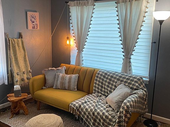 This is a fully furnished, adorable cottage in a pretty neighborhood. Nothing for you to do but drop your bags and move in! This home was remodeled less than four years ago with new a new roof; HVAC, including a new central air unit; updated plumbing; a new kitchen and bath; and newly refinished wood floors - No carpet! There's a large yard that's fully fenced in the back so your kids and pets will be safe, and an oversized garage for storage! This home offers plenty of off-street parking, either in the garage or in the drive way. There are two bedrooms, one with a double bed and one with a large desk and twin-sized bed. There's also a pull-out futon couch in the living room. There's one bath with a tub and shower and a washer/dryer combo in the kitchen. The kitchen is fully stocked with dishes, cutlery, cookware, etc., an apartment-sized fridge, gas stove and oven, and microwave. NO EXTRA FEE FOR APPLIANCES!