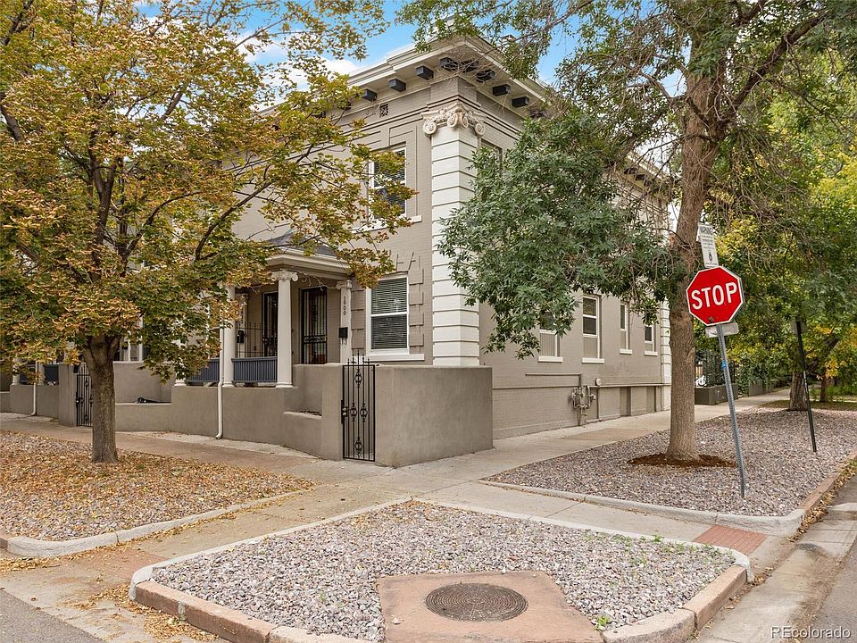 Located in a hip urban location, just one block from countless restaurants and nightlife on 17th ave in the vibrant neighborhood of Wymans / Uptown, is a historic all brick End-Unit Townhome with 3 bedrooms and 2 bathrooms. This is an appealing smaller complex, with only four total units and a laid-back HOA. The covered front porch welcomes you into this rare corner unit, providing nice light to all interior living areas through multiple windows. The home has nice wood floors and an open floor plan. The gas fireplace with a slate surround warms the space and is a focal point of the main living area and the half bath on the main level is a must...some other properties in the area at similar price-points only have one bathroom upstairs on the second level! The basement is partially finished with a large laundry room (with storage), utility closet and a functional office/studio/flex space. Upstairs are 3 bright bedrooms, a skylight and ideal west facing exposure. The Seller is currently acquiring estimates and will be providing a concession to replace all of the carpets on the second level inclusive of the stairs. The back deck is great for grilling in the evenings and dogs are allowed as well. Large trees surround the property. Enjoy close proximity to all things that are great about living the Denver urban lifestyle. Denver's Largest park, City Park, is only 5 minutes away by bike, 10 mins by foot. Cycle straight downtown via 16th ave in just 10 minutes. The Denver Zoo and Museum of Nature and Science are a 5 minute drive away. Stroll to brunch at The Weathervane Cafe, Waffle Brothers, Pete's Kitchen or Spices Cafe. Meet friends for lunch at Olive and Finch, Pho and Bar, White Pie or Illegal Pete's. Dine and have drinks at Atelier, The District, Humboldt Kitchen, Dos Santos or Reverence Brewing Company all within blocks of this fun urban townhome awaiting its next lucky owner.