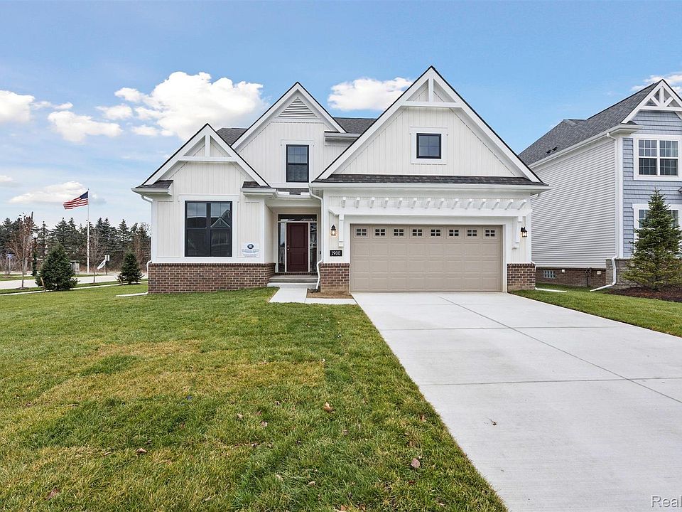 Beautiful two story farmhouse style home in Wixom. Burbank is a stunning two open concept plan that includes family, oversized dining room, and kitchen with large island, walk in pantry, Whirlpool appliances - range, dishwasher, microwave. Granite countertops in kitchen and baths. Owner's suite includes private bath with soaking tub and large walk in closet.