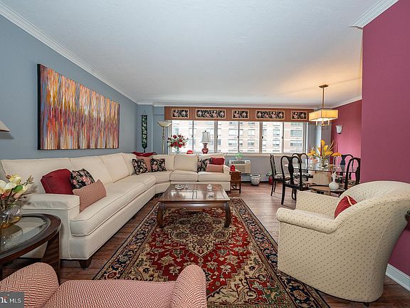 This bright and updated corner two-bedroom, one-bath unit features hardwood floors, crown molding, and an open-concept living and dining area filled with natural light—perfect for relaxing or entertaining. The updated kitchen showcases crisp white cabinetry, a stylish tile backsplash, and abundant workspace and storage. The spacious primary bedroom offers a walk-in closet, while the second bedroom—with a wall of built-in bookshelves—provides great versatility for guests or a home office. The updated hall bath includes a full tub, and convenient in-unit laundry and additional storage complete the home. Residents enjoy a beautiful rooftop deck, community room, and library. Penn Center House is a well-managed, owner-occupied building offering secure access, front desk coverage, and on-site maintenance. Unbeatable location near Philadelphia’s world-class museums, restaurants, and entertainment, within the highly rated Greenfield K-8 catchment. The monthly co-op fee covers all utilities, basic cable, and real estate taxes. Parking and gym membership are available for an additional fee. Financing options offered through First Trust and Cross Country Mortgage.