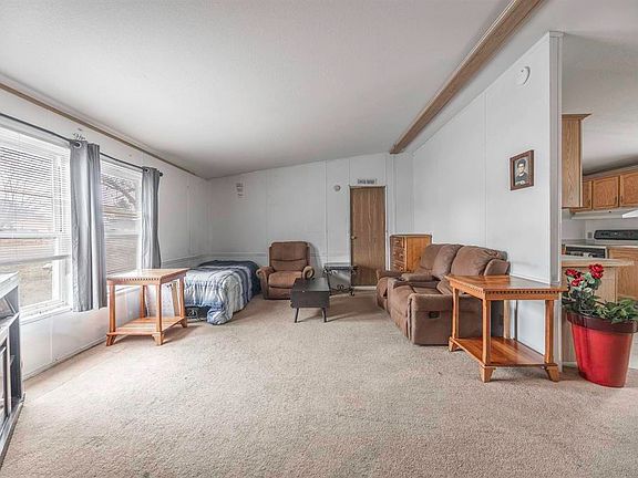 Discover a versatile property on an oversized 0.31-acre corner lot offering space, flexibility, and convenience in the popular Rainbow Meadows subdivision. This 3-bedroom, 2-bath manufactured home features a large open kitchen with abundant natural light, generous cabinet and counter space, and an attached laundry room with access to the fenced backyard. The primary suite includes a garden soaking tub, double sinks, and a separate shower, while the second bath offers an accessible shower. A standout feature is the 2-car detached garage with a 660 sq ft county-designated rec room complete with its own bathroom that would be ideal for workshop needs, creative space, office use, or storage. Additional highlights include RV parking pad with a sewer clean-out, two extra parking spaces in front of the home, a storage shed, and stone pathways connecting the outdoor areas. Conveniently located near the rec center, shopping, schools, and restaurants. Home is priced to reflect updates and maintenance needed, offering a strong value opportunity. Schedule your showing today and come see for yourself!