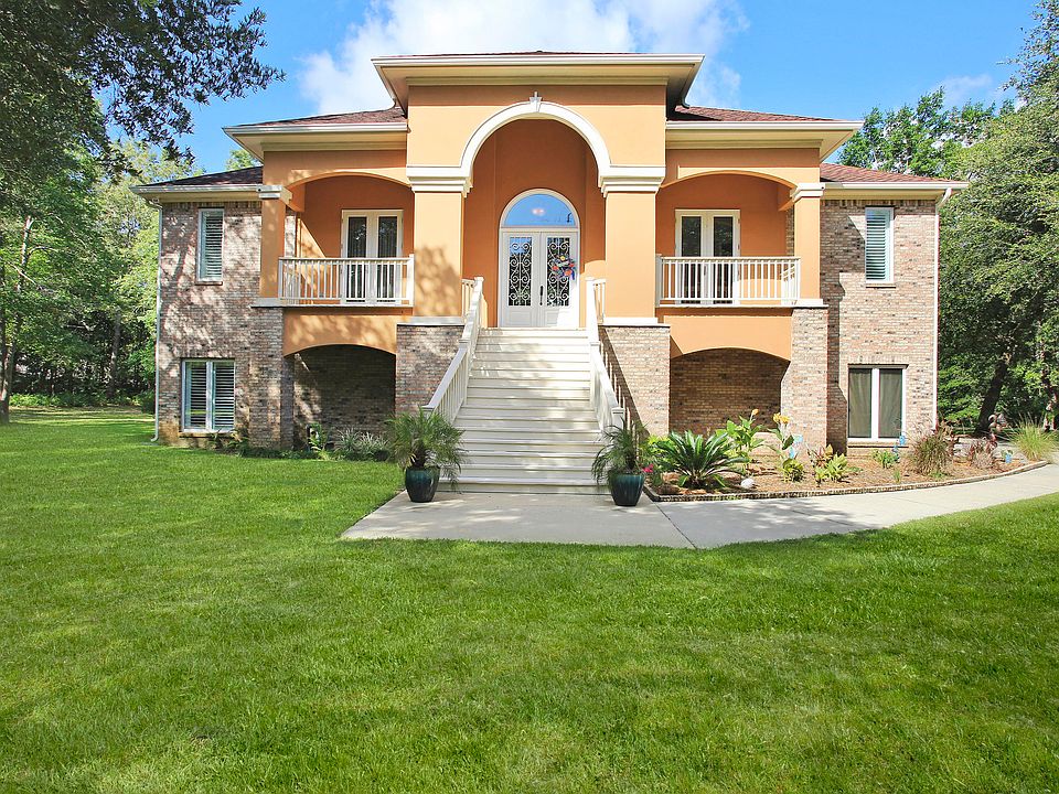 Absolute perfection is what comes to mind when I think of this home. Nestled on a corner lot backing up to the Pascagoula River which leads into Bayou Castelle, this home sits on 5 acres. Property goes across the water and into the marsh in the rear of the home. The views from the back patio are absolutely stunning! The first floor of the home is a mother in law suite which has plumbing to add a downstairs kitchen if desired. Pool table and safe to remain with the property. Upstairs you will be greeted with high ceilings and decorative lighting in the ceiling offering multiple colors for any mood you desire. Located near the Hickory Hills golf course and easy access to the Gulf make this the perfect home for anyone looking for luxury on the water!