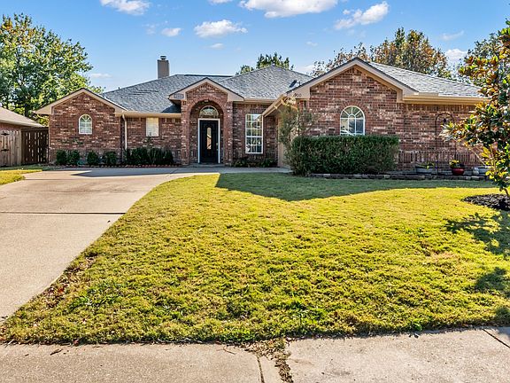 Charming one-story, 3-bedroom, 2-bath home located in North Denton on a quiet cul-de-sac. Prime location with easy access to highly desired schools, Loop 288, I-35E, TWU, Downtown Denton, UNT, and University Drive shopping. Recent updates include a new roof (Nov ’25), fresh interior and exterior paint, new gutters and granite kitchen countertops. The kitchen opens to a spacious living area, while the formal dining room offers flexibility for use as a home office. The large primary bedroom features an updated bath with dual sinks, plus a generous walk-in closet private safe and pull down built-in ironing board. A sizeable flex room provides additional options as a family room or home office. Additional highlights include a wood-burning fireplace in the main living area and a covered patio is perfect for outdoor entertaining. The spacious backyard offers endless possibilities, with mature shade trees, room for a playground, a hot tub, and plenty of space for pets to roam. Enjoy the convenience of two backyard outbuildings—perfect for storage or a workshop—connected by a stone walkway that ensures easy access, rain or shine.