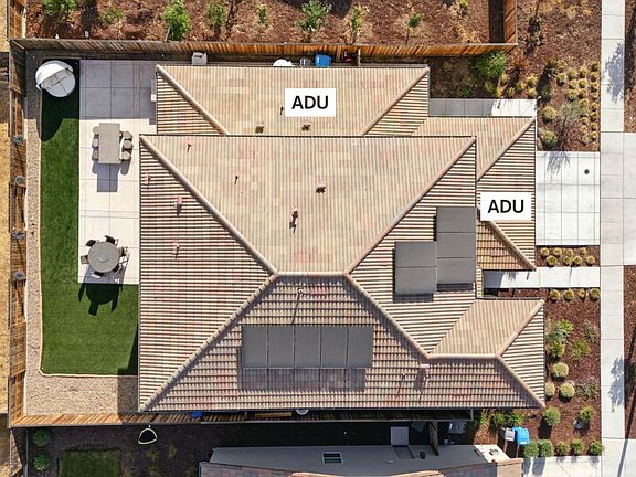 Built in 2024, this NextGen Lennar home provides more space without compromising privacy or independence. Spacious and modern ~3,232 square foot layout, on a ~5,948 square foot lot with a 3-car-garage. Main house has 4 bedrooms / 3 bathrooms and includes an attached, permitted 1 bedroom / 1 bathroom private suite. This ADU is part of the original builder floorplan, and is accessible through the kitchen or via separate exterior entrance. This 1/1 suite has it's own wet bar / kitchenette, living room, bedroom with ensuite bathroom, and laundry area. In the main home, 1 bedroom and 1 full bathroom are downstairs, as well as a large den / office. The other 3 bedrooms and 2 bathrooms are upstairs, along with the loft and laundry room. Primary bedroom has a walk-in closet and ensuite bathroom with an oversized tub and double sinks. The generously sized kitchen is equipped with quartz countertops, a built-in oven range with gas, dishwasher and microwave. The home is designed for comfort and convenience, with high ceilings, tons of storage and an open floorplan kitchen and family room. Enjoy the benefits of modern energy features like double pane windows, solar power, and a tankless water heater. Dual zone heat and AC. This beautiful home is priced to sell - come see it before it's gone!