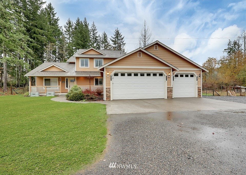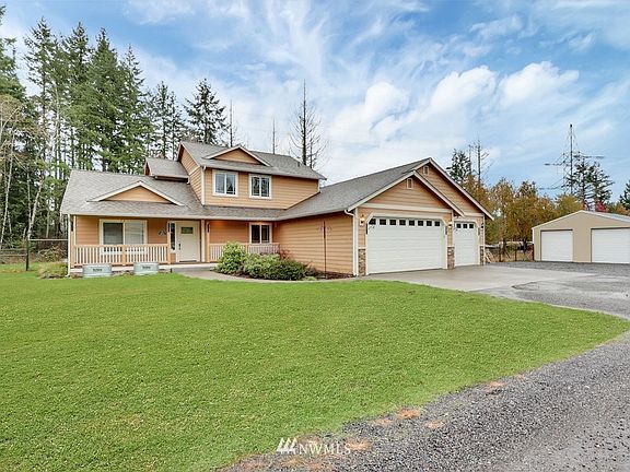 Amazing Country Retreat just 15 minutes West of Downtown Olympia! Beautiful modern craftsman style home set on massive 5 acre property with huge potential. Welcoming and desirable floorplan with spacious open kitchen with hardwood flooring, cozy living room with fireplace, lower level Primary Bedroom, den perfect for a home office, and 2 additional bedrooms + bonus room upstairs! Attached 3 car garage and detached shop space allow for plenty of storage and so many possibilities. Beautiful home ready for a new owner just in time for the holidays!