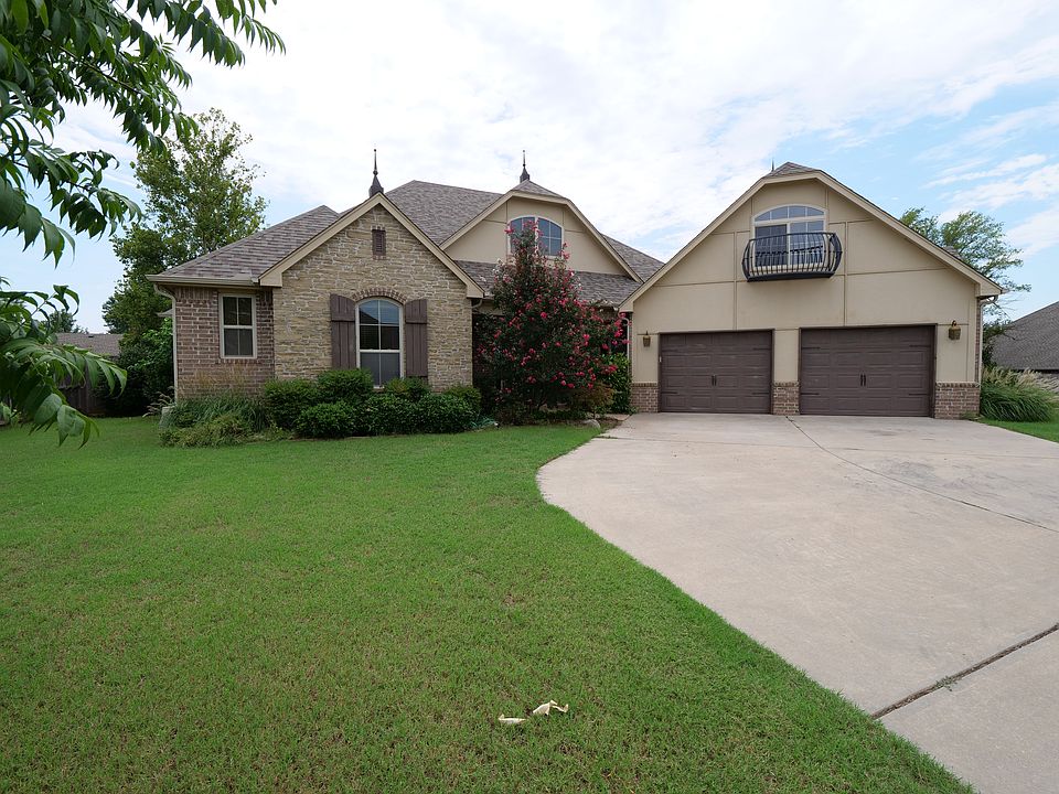There is a 408 Sq ft upstairs bonus/living room, in addition to 3 nice size bedrooms, 2 full bathrooms, formal dining or office area, breakfast bar, mud room and eat in kitchen. The kitchen is open and includes a large walk-in pantry. The master bedroom has access to the back patio. Hallbrooke has three ponds, a swimming pool and and clubhouse. The garage fit's a 20ft boat with a break away tongue! 405-863-7779