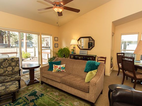 Remarkably updated single-level home, walkable to everything in Bend. Tall vaulted ceilings and large windows with a bright interior. Spacious island kitchen. Master bath w/ soaking tub, tile/glass shower, heated floor. Fenced backyard w/decking & pavers. Native pines in natural landscaping. Green features include energy efficient water heater, high efficiency furnace remote setting thermostat. Three car garage with an extra parking space at the side. Extensive updates. Pets considered. with additional deposit. Fridge and washer/dryer included. Pets considered, with additional deposit.