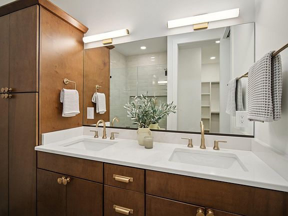 Nestled in the heart of Crestview, a picturesque neighborhood in North Central Austin. This delightful property is located on a peaceful street, just steps away from quaint cafes, lively bars, and a diverse array of restaurants, offering the perfect balance of comfort and convenience. As you enter the home, you'll be captivated by its elegant design and seamless functionality. The living area is bathed in natural light, thanks to expansive double-pane windows and multiple sliding glass doors that open to a spacious deck, creating an inviting indoor-outdoor living experience. The kitchen is a dream for any host, featuring top-tier appliances, gleaming white quartz countertops, a large island, ample soft-close cabinetry, a walk-in pantry, and a classic white porcelain farmhouse sink. The home offers 4 bedrooms, each with its own ensuite bathroom, providing a private retreat for everyone. The first-floor guest suite and an additional powder room add to the convenience. Upstairs, the primary bedroom is joined by two additional bedrooms and bathrooms, offering plenty of space for residents and guests alike. The main hallway leads to an upstairs balcony, perfect for relaxing and enjoying the evening views. The primary bedroom, located on the second floor, is a bright and airy space with vaulted ceilings and abundant natural light. Its ensuite bathroom offers a luxurious escape with a spacious walk-in shower and dual vanities.