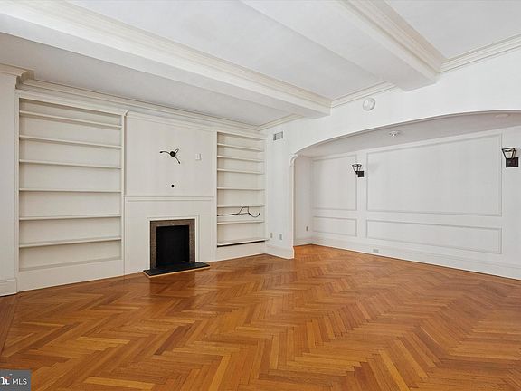 Welcome to 1900 Rittenhouse Square, a landmark building offering timeless elegance directly on Philadelphia's most coveted park. This sunfilled and expansive 1-bedroom plus large den spans approximately 1,175 square feet and lives beautifully like a two-bedroom, with soaring ceilings, intricate millwork, and hardwood floors throughout. The residence offers two private entrances and a grand, light-filled living room anchored by a decorative fireplace and flanked by built-in shelving, an inviting space that blends character with sophistication. French doors open to an oversized den, perfect as a second bedroom, office, library, or media room. This flexible space directly connects to the kitchen, where a large window frames architectural views of the Square and the historic buildings beyond. Classic cabinetry, ample storage, and generous counter space make the kitchen as functional as it is charming. The spacious primary bedroom receives exceptional natural light and features extensive built-in closet systems for effortless organization. The en suite full bathroom is finished with timeless tilework and vintage-style fixtures, while a separate half bath adds daily convenience for guests. A separate laundry area with a stacked washer and dryer adds everyday ease. With its sun-drenched rooms, architectural detailing, refined proportions, and unmatched location right on Rittenhouse Square, this residence offers the best of classic Philadelphia living in a building known for its boutique scale, 24-hour doorman, and proximity to the city's finest dining, shopping, and cultural destinations. A rare opportunity to enjoy elegant, flexible living in one of the Square's most distinguished addresses. Two-year lease required.