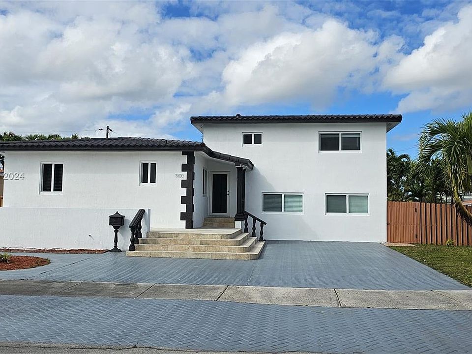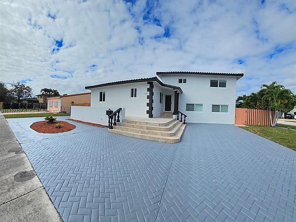 SUPER & SPECTACULAR corner lot in the highly sought-after area of 33155 in Westchester with 4 bedrooms and 4 bathrooms. This home also has a studio efficiency with its own private entrance to the right of the house. The main home is a 3/3 containing a full bedroom and bath on the first floor, and two spacious bedrooms with their own independent bathrooms upstairs. The property boasts impact windows and doors, plenty of space and natural sunlight, and a very spacious yard with plenty of space for entertaining, a pool, and multiple entrances for a boat and/or an RV. The backyard also has a detached concrete storage space. You don’t want to miss this opportunity to own this local gem!