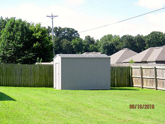 This home offers 3 bedroom split plan with 2 baths. Master bath with dual his & her sinks, whirlpool/jacuzzi tub and 2 walk in closets. Spacious dinette area and living area with gas log fireplace. All white appliances - stove, microwave, refrigerator, dishwasher. Attached double garage with door opener, large manicured fenced lot with patio and 8x12 storage shed. Freshly painted and new carpet. Located only 10 minutes to Wal-Mart Offices. Available now for qualified tenant. Small pet considered with non-refundable $500 deposit. One year lease. NO SMOKING.