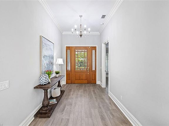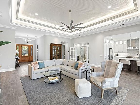 Tastefully Renovated Royal Harbor Home. Walk in through oak front doors into an open floor plan with vaulted ceilings and view to the outdoor living area and pool that overlooks the canal. Enjoy a luminous kitchen including White Glacier countertops, white cabinetry-to ceiling w/glass fronts, gas stove/gas range with hood, microwave all new with the renovation. The kitchen also features a large island 8' x 5'. The Primary suite was also renovated and features white, grey granite, white shaker cabinets, stand alone tub. All bedroom closets have built in closet system. Don't miss this opportunity to live in one of Naples most desirable waterfront communities. Dock use available for boaters. NOT AVAILABLE August 2025.