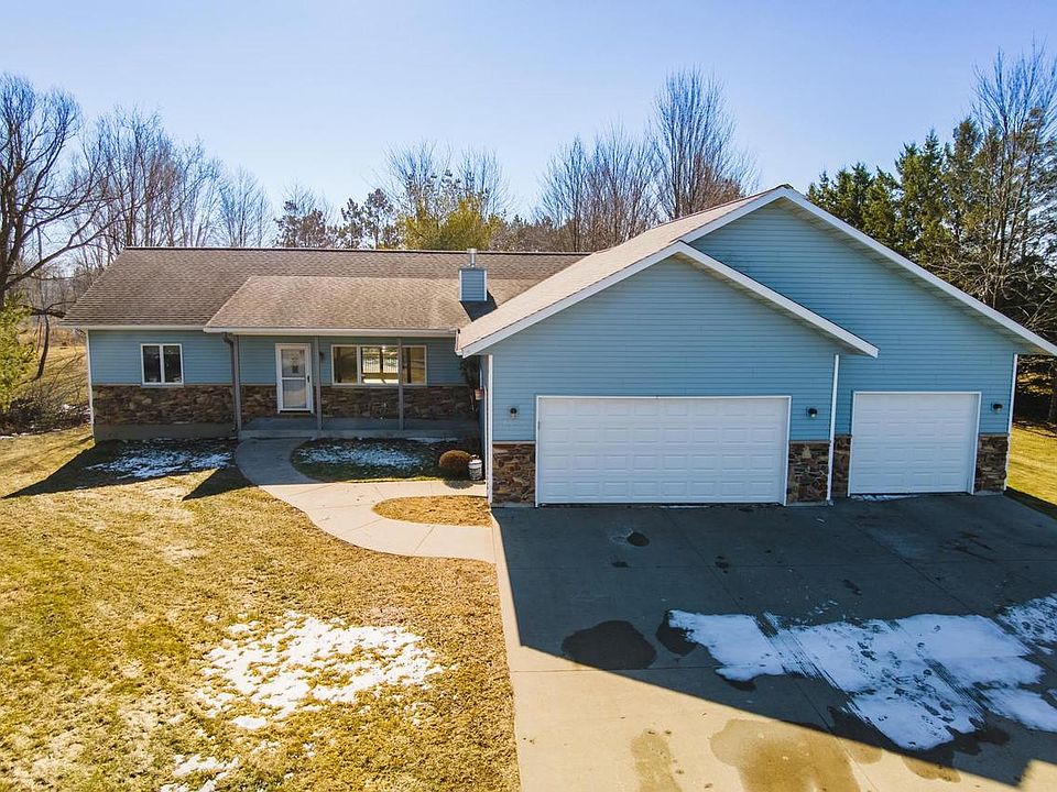 Welcome to this beautiful home on 1.22 acres! Located in Marshfield, with easy access to shopping, schools, highway and so much more. As you enter this open concept home, you will notice the living room with a gas fireplace, vinyl planking flooring that spills into the kitchen with a newer appliances in 2022, a deck off the dining room that overlooks the beautiful park like back yard with its very own pond, and blueberry bushes. You will be able to watch the deer, turkey, geese all in the comfort of your backyard. The spacious 3 car garage has 34 inches of insulation and blown insulation in ceiling, wired for EV charging and also has a wheelchair ramp that can be put in place should you need it for easy access to the home.,Boasting with 3 Bedrooms and 3 bathrooms. The main bedroom has a walk-in closet, its' own bathroom with a zero-entry tiled shower, jetted tub, heated floors, and a heat lamp. Just down the hall are two more bedrooms and a full bathroom. A add feature is the sound system throughout the home. As you enter the basement you will notice the 9 ft ceilings, section off portions already framed and drywalled, electrical outlets installed, 2 egress windows an added full bathroom with walk in shower. This home has a Venmar Constructo air exchange with dehumidifier/humidifier for better home air quality. This property is on 2 lots and 2 separate pin numbers, 250-2602-364-9938 & 250-2602-364-0070. You will not want to miss out on this home!!!! All shelves and items in the garage will stay with the home.