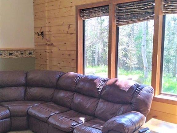 Charming Mountain Cabin tucked into the trees aspens and evergreens. Very spacious with a vaulted ceiling and large windows to take in the views. The kitchen has plenty of storage, stainless steel appliances, granite counters and a wine/beverage fridge. This place comes furnished so you can move right in!! There are 2 bedrooms and 1 bath. The laundry closet has a stack washer/dryer on one side and storage shelves on the other. There is an additional 864 sq. ft. accessible from the living room, into a sub-basement/storage are that can be improved with an exterior door. The front deck is perfect for relaxing and dining al fresco an out back you can enjoy the fire pit area and picnic table for evening s'mores and stargazing. Arrowhead has 2 stocked lakes to fish and plenty of hiking trails as well as miles of forest service roads to explore the National Forest. Arrowhead Mountain Lodge is close by and offers food & spirits 7 days a week and live music outside in the beer garden on weekends thru the summer.