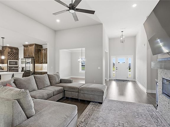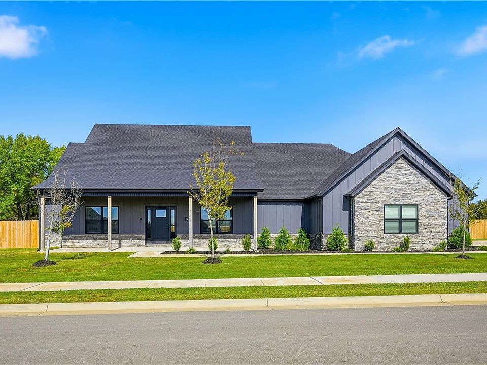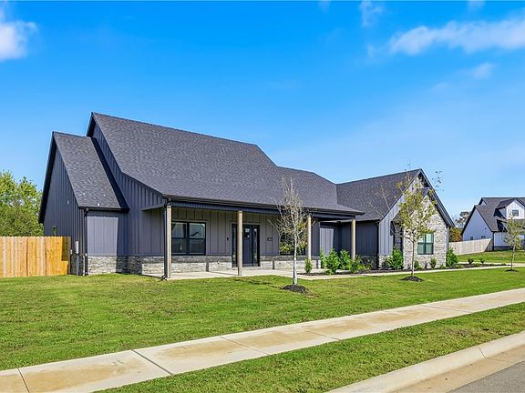 Welcome to your beautiful new dream home, nestled on a full acre, in the serene setting of Pea Ridge! This 2024 constructed home features 4 generously sized bedrooms and 2.5 baths. The living area is accented with soaring ceilings and a cozy fireplace for chilly fall evenings. The living room flows into the dining space and modern kitchen, which is equipped with granite counters, plenty of cabinets, and an oversized pantry. The primary suite is a private retreat, with access to the covered patio. Enjoy the spacious bath w/ a walk-in shower, double sink, and a separate soaker tub to relax! You will love the large closet w/ built in drawers and access to the laundry room, also complete with granite countertops! The 3 car attached garage is extra spacious, with room for full-size trucks—850 sq ft! The expansive, completely privacy fenced lot provides a perfect backdrop for outdoor activities, gardening, or simply relaxing. With an acre at your disposal, there’s plenty of room to grow with a future pool or playground!