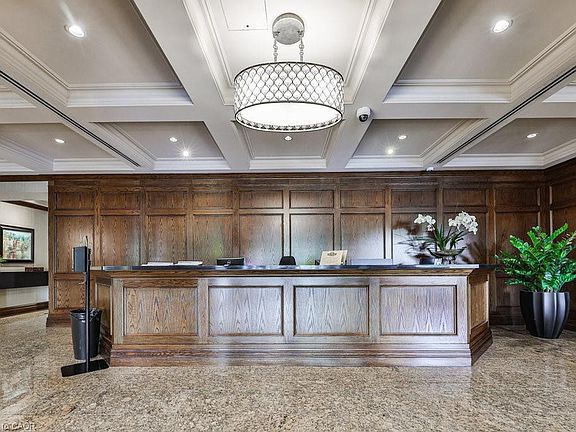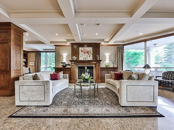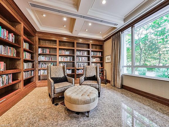 Welcome to The Palace, one of Mississauga's most prestigious and highly sought-after condominium communities. This upscale residence offers a wealth of amenities, including concierge, fitness centre, indoor pool, car wash station, underground visitor parking, and more. This desirable 2-bedroom, 2.5-bath "07" model boasts a tranquil easterly exposure, offering treetop views of the picturesque Sawmill Valley Trail. Spanning 1,732 sqft, the unit features a thoughtfully designed and functional layout. The tasteful open-concept living and dining area is perfect for everyday life, accentuated by stylish wainscoting and complete with a cozy gas fireplace and custom built-in bookshelves. The kitchen provides ample storage and sightline into the main living spaces, making it both practical and inviting. The spacious primary bedroom includes a walk-in closet, a luxurious 5-piece ensuite, and walk-out access to the oversized balcony. The second bedroom, accessed through elegant French doors, also features a walk-in closet, its own 4-piece ensuite, and walk-out to the balcony. Life at The Palace offers sophisticated, resort-style living with all the conveniences of a central location-yet comfortably removed from the city's hustle and bustle. Experience refined living at its finest. One underground parking space close to the elevator and a sizeable storage locker also included