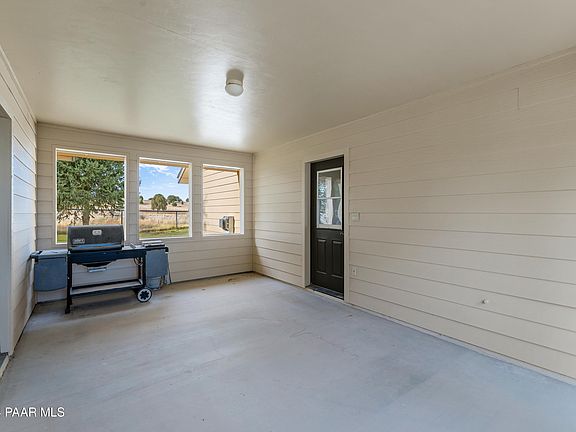 Welcome to this quaint 4.6-acre property, backing up to State Land! Featuring a charming site-built home with fresh exterior and interior paint, 2 car attached garage, and 1-car detached garage w/workshop. Home has updated granite countertops in kitchen, spacious dining room and solar system. Enjoy the covered patio w/ lots of green grass, mature landscaping & separately fenced yard. Horse enthusiasts will appreciate the barn, currently featuring two stalls, a tack room & feed storage room. Substantial pipe fenced turn out area & additional covered hay storage, and shed. Direct access to State Land, you can enjoy miles of riding and exploring nature right out your own backyard!