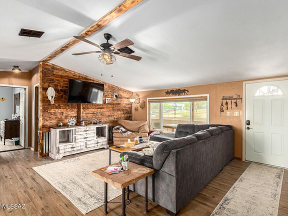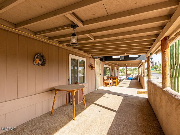 Transformed into a super sweet Santa Fe with additional living space both inside and out. Completely fenced. Original home square footage is 1440 sq ft with an additional 600 sq ft of enclosed Arizona Room, Office and Spa Room. New flooring throughout and bathrooms have been updated within the last year. Wonderful wood accent walls surround the inside of the home. Porches and decks on 3 sides of the home. Built in BBQ. 2 car carport, plus workshop/garage with electric and an additional storage shed. Property has huge granite rocks located all over the property. Views of the Catalinas from your front porch and views of Mountains from the back. So much space with mature trees. You can make this property whatever you want it to be. Truly a must see!