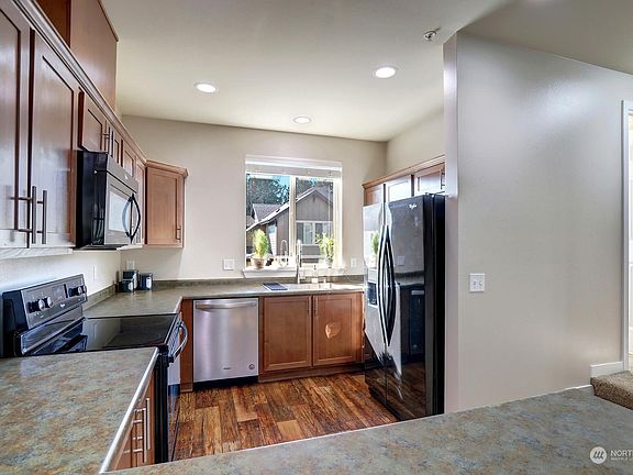 Beautiful natural lighting abounds in this modern townhome with convenient Snohomish location. Easily walk to restaurants & coffee shops. Spacious 2 car tandem garage w/ additional storage adds to the many features of this home. Open living room, dining room, kitchen concept w/ access to your private patio. The contemporary kitchen is flooded with sunlight, featuring a new dishwasher, shaker cabinets and pantry. Restful bedrooms are set away from the living area, both w/ their own full bath. Primary bedroom features double closets w/ custom organizers, and an ensuite 4 piece bath. For convenience, W/D is on this level as well. New interior and exterior paint, and easy low maintenance living make this home move in ready. VA/FHA Apprvd.