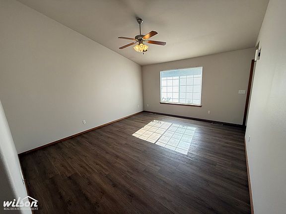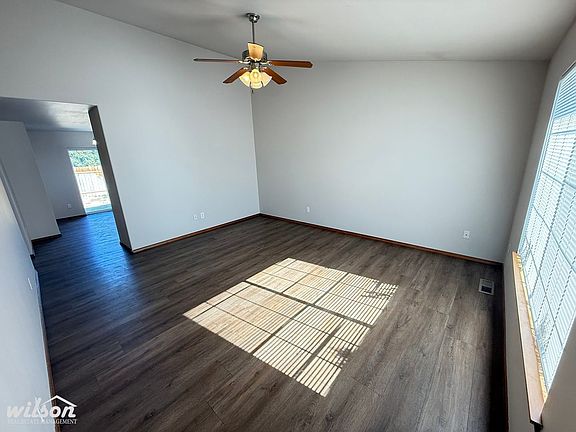 This rambler-style home features an attached car garage and a fully fenced backyard. As you enter the home, the open living room and dining room areas are offset by a beautiful living room ceiling, boasting a modern line and ceiling fan. Your kitchen provides plenty of cabinet space. All three bedrooms are well-appointed in size. This unit has a double car garage, underground sprinklers & back patio. Washer and dryer hookups. Tenant is responsible for all utilities. Yard care is included with rent. Pictures of similar property