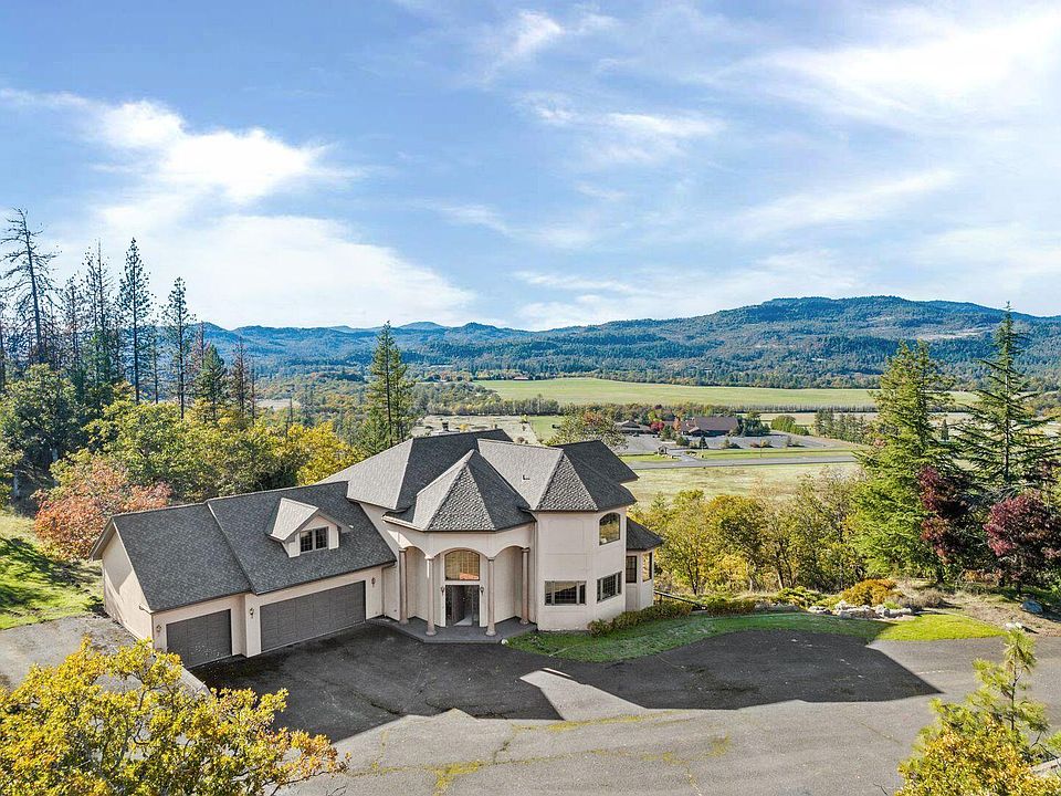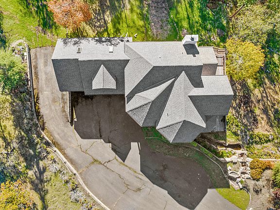 Stunning estate on the hill. Beautifully situated home with stunning features. Walk into a grand entrance with crystal chandeliers, and a dramatic stairway to the upper floor. Well appointed kitchen and breakfast room as well as a formal dining room. Large living room has built in shelves, a wood fireplace and French doors to a deck. The upper level has the master suite, and bath as well as 2nd bedroom with full bath and a bonus room. The downstairs level is complete with a living area, office space, full kitchen, bedroom, full and half baths.
