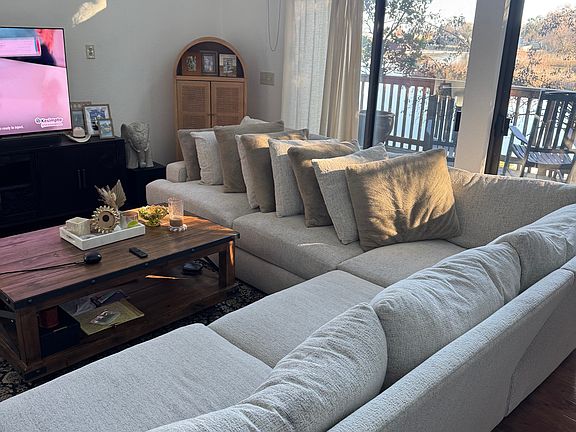 Two-car garageDirect river accessStunning water viewsBright open layout