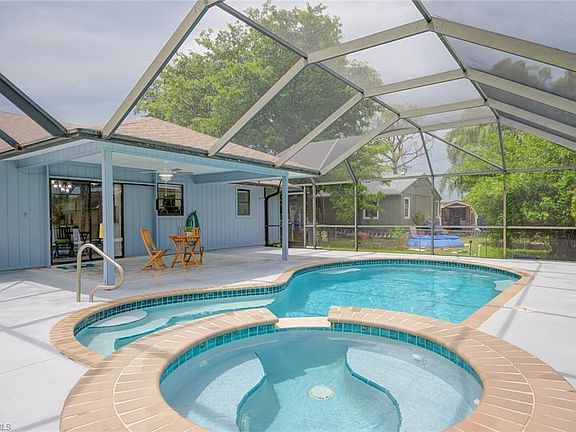Beautifully remodeled home located in the popular neighborhood of San Carlos Park. Enjoy entertaining in your screened in lanai and relax in your heated spa. Beautiful kitchen with leathered custom granite countertops. New stainless steel appliances including a four-door refrigerator. Split bedrooms with full bathrooms. Master bedroom with walk-in closet. Master bathroom rainfall show head and custom glass shower enclosure. See our 3D virtual tour.