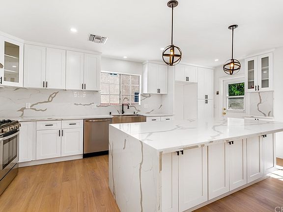 PRICE REDUCTION!!! Seller willing to contribute to buyer's interest rate buy down! Come see this beautifully remodeled 5 bedroom, 4 bathroom home in Tarzana. This modern style home features an open floor plan, high ceilings, recessed lighting, and luxurious finishes throughout. A designers dream double door welcomes you to this phenomenal open floor plan and a 3D panel wall. An open kitchen with white shaker cabinets and soft closing hinges, calacatta quartz counter tops and backsplash, an 8 foot island with a waterfall countertop, stainless steel appliances, and matte black handles and faucet leads into a spacious dining area. The family room with a fire place is full of natural light. The living room features a dry bar and wine cooler for all your entertaining needs. The master suite has a large walk-in closet, gorgeous master bathroom with dual vanity, walk-in shower, floor to ceiling tile and freestanding soaking tub. A Second Master bedroom has a large closet and it's own full bath with floor to ceiling tile. 3rd bedroom also has its own bathroom and walk-in shower with floor to ceiling tile. Two additional bedrooms are great in size and can be used for a home office, play room, or guest room. Spacious backyard with fresh landscaping with plenty of room for a pool. Front yard features a drought friendly landscaping. Detached garage may also be converted to an ADU for rental income.