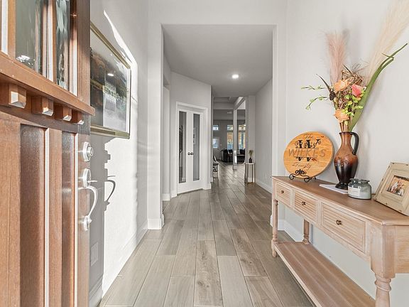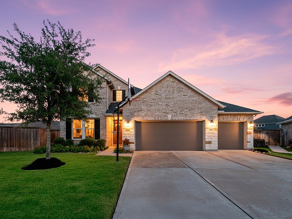 Welcome to this beautiful home in the resort-style Amira community in Tomball, TX! This move-in ready residence is perfectly situated on a quiet cul-de-sac, offering privacy and an extended driveway with an oversized three-car garage. Built in 2020 and meticulously maintained, the home features 4 bedrooms and 3.5 baths. The primary suite and a guest bedroom are conveniently located on the first floor, ideal for multigenerational living or overnight guests. The open-concept layout features wood-look tile throughout the main living areas and a private office with glass French doors. The spacious family room flows seamlessly into a gorgeous kitchen with granite countertops, stainless steel appliances, a breakfast bar, and a bright formal dining area. Enjoy outdoor living on the covered patio overlooking a generous backyard with a full sprinkler system and plenty of room for your future backyard oasis. The community offers walking trails, lakes, parks, resort style pool, dog park and more!