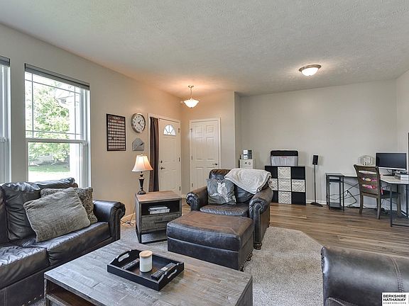 Open House 9/21 1-3 p.m. A great opportunity in popular Oakmont. Oakmont is in the coveted Millard School District and conveniently located near shopping, parks, and restaurants. You will love the updates throughout, including a fabulous kitchen with stainless steel appliances, countertops, and stainless steel sink. Kitchen is open to family room with a fireplace, with upgraded engineered flooring and a view of the fenced rear yard. There are three spacious bedrooms on the second floor plus the laundry room. The lower level is finished and would be a comfortable rec room, office, play room etc. The rear yard is flat and features a fence and a sprinkler system. Bonus is this lovely home is located on a quiet street. This home has vinyl siding, a newer roof and the furnace and a/c are only one year old!Nothing needs to be done here but move in and drop your bags.