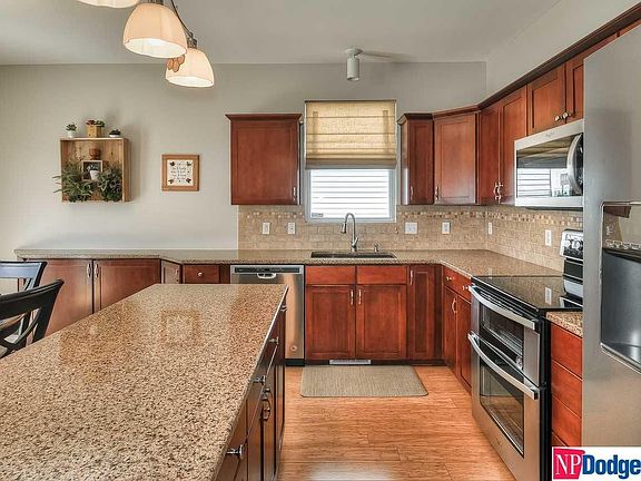 Millard West Schools and popular Oakmont move-in ready Ranch with 4n bedrdooms, 3 baths with finished basement. New roof in 2017. High efficiency Furnace/AC in 2019. Walk into the tastefully kept home with a gorgeous ceramic tile entry & 9 ft ceilings throughout main floor. The kitchen with plenty of cabinets, quartz countertops, stainless steel appliances, bamboo floors and big island that flows into the family room with a beautiful fireplace, tall ceilings with the open floor plan you have been looking for. The large master has a walk-in closet, spacious bathroom with double vanity/shower/ceramic tile floor. The spacious basement has a recreation room that flows with a raised bar, plenty of cabinets, game/play/media room, big bedroom/full bath and plenty of storage. The exterior has level rear yard, 6 foot privacy fence, large patio and a shed for additional storage. New roof in 2017. High efficiency Furnace/AC in 2019. Enjoy the community parks within walking distance.