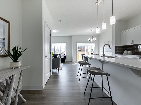 The Uplands at Riverview provides a lively lifestyle unlike any other in West Edmonton. A community-built with your kids in mind, enjoy the benefits of outdoor and indoor recreation. With over 1470 square feet of open concept living space, SIDE ENTRANCE the Soho-D from Akash Homes is built with your growing family in mind. This duplex home features 3 bedrooms, 2.5 bathrooms and chrome faucets throughout. Enjoy extra living space on the main floor with the laundry room and full sink on the second floor. The 9-foot ceilings on main floor and quartz countertops throughout blends style and functionality for your family to build endless memories. PLUS a single oversized attached garage & $5000 BRICK CREDIT! PICTURES ARE OF SHOWHOME; ACTUAL HOME, PLANS, FIXTURES, AND FINISES MAY VARY & SUBJECT TO AVAILABILITY/CHANGES!
