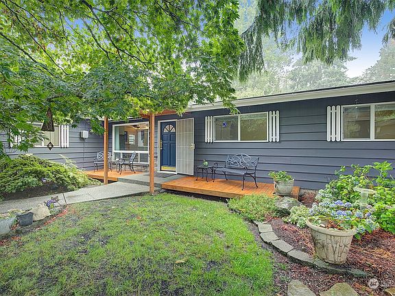 Updated Edmonds rambler on a lovely cul-de-sac close to Downtown Edmonds, beach, ferry, train station, shopping & cafes. Open living room w/cathedral ceilings, new floors, windows & gas fireplace. Kitchen has been updated w/custom wood cabinets, plenty of counters & picture window of lovely backyard. Dining room off kitchen w/slider to back patio. Home has 4 bedrooms w/walk-in closet, or 3 bedrooms w/ family rm/office. Double carport & huge 2+ car garage w/workshop & storage. Newer roof, copper plumbing, updated electrical & gas furnace. Detached outbuilding/studio/hobby room, approx 400 sq ft. The yard is absolutely beautiful. There is a vegetable garden, greenhouse with peace & tranquility. Wonderful property & location!
