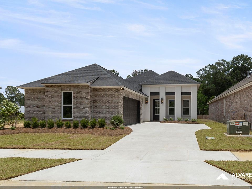 Welcome to the newest addition to Zachary, LA, Cheval Trails. The Alvarez Construction exclusive community features homes ranging from 1,547 sq ft to 1,968 sq ft, perfect for any family. With these homes come many modern amenities, including a doorbell camera for added security. All homes come with a WiFi-enabled SmartHome management hub that includes 3 months of free monitoring. All homes also have a wireless smoke/heat combination detector and a WiFi-enabled thermostat with moisture controls and an advanced filtration system. With all of these smart home features, this community is sure to be the perfect place to call home. Introducing the Aspen home: a single-story, 3-bedroom, 2-bathroom, 2,014 sq ft residence designed for modern living. The open and spacious layout features 12' high ceilings and a welcoming foyer that leads to the living, dining, and kitchen areas. The kitchen boasts a breakfast area, a chef's island, GE stainless steel smart appliances, a gas cooktop, a separate wall oven, and a walk-in pantry. Natural light floods the dining area through large back windows. The private master bedroom includes an en-suite bathroom with dual vanities, a walk-in shower, a garden tub, WC, and a walk-in closet. The home also offers an office, two additional bedrooms, 3cm granite counters in the kitchen and baths, LVT or wood floors, oversized ceramic tiles, and carpet in the bedrooms. Additional features include a full-size utility room, a private entrance from the garage, and a courtyard-style back porch for outdoor relaxation.