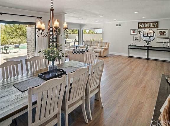The perfect blend of warmth & style! Experience the California lifestyle here in Porter Ranch with this sensational sunlit 5 bedroom, 3 bath home with almost 2500 sq. ft. of gorgeously upgraded living space on an approx. 9000 sq. ft. lot with a sparkling pool and scenic mountain views. Situated in one of Porter Ranchs most sought after neighborhoods and within the sought after charter schools of Castlebay Lane and Granada Hills!!! From the first moment you step inside you will want this beauty. Featuring luxury vinyl wood plank flooring throughout, smooth ceilings, recessed lighting, crown moldings, dual pane windows, updated banister, fixtures, switches, and baseboards, fresh paint inside and out, central air & heat, and re-roofed in 2020. Natural light abounds in the living room and dining area with tons of windows to take in the views. The DREAM kitchen was completed in 2020 and boasts quartz counter tops, pantry and soft close cabinets, bay window and a convenient breakfast nook. Upper level primary bedroom with mountain views, walk-in closet, and en suite bath with spa tub and separate shower. All secondary bedrooms are ample sized, and include 2 downstairs bedrooms (one converted to home office). The entertainers rear yard is ready for summer with refreshing pool, great patio area, and grassy area. Direct access 2 car garage and just minutes to easy freeway access, shopping and dining at the new Vineyards at Porter Ranch, parks, trails and so much more!
