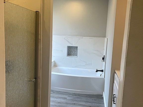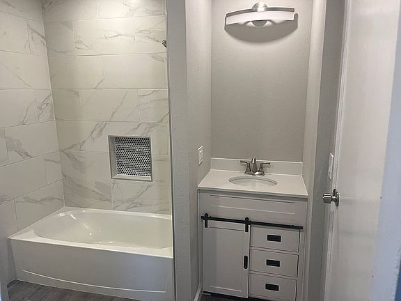 Spacious remodel quad four bedroom two bath home on a corner lot, new drywall, new vinyl Plank flooring throughout Remodeled kitchen cabinets. Quartz countertops, sink & faucets, garbage disposal. Spacious main bedroom with massive walk-in closet. Large master bath including a new soaking tub, new tiled shower, double sink vanity With LED lighting. One bedroom has a fireplace The large guest bathroom includes a new vanity, new lighting new tub in extra space for built-in storage. The laundry room has plenty of storage cabinets. New indoor/ outdoor carpet on the spacious covered porch. Carport parking for a least two cars.