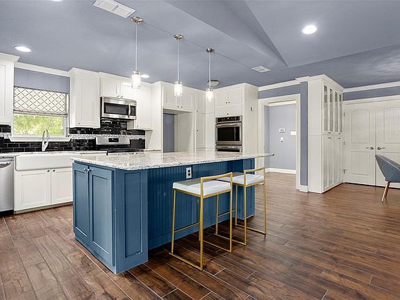 Located on a corner lot in Ridgmar, this spectacular home has an open floor plan and backyard retreat that is perfect for entertaining. The home has great curb appeal with an inviting covered front porch. The formal living room has a bay window and opens to the dining room, family room, and kitchen. The eat-in kitchen features a large island, stainless appliances, double ovens, gas range, farmhouse sink, and granite counters. The spacious family room focuses on the gas fireplace and opens to the breakfast room that features built-in cabinets. The serene primary suite has three amazing closets and a primary bath with double sinks, an oversized shower, and granite counters. One of the three additional bedrooms also has a walk-in closet and an en suite bathroom with double sinks, jetted tub, and a separate shower. The outdoor living space includes an extensive covered patio with built-in granite counters, pool, and separate hot tub. 2022-08-05